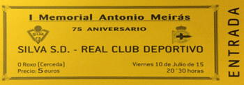 El Silva SD anuncia en su página web oficial que pone ya a la venta las entradas para el partido ante el Dépor del próximo viernes 10 de julio, perteneciente al Memorial Antonio Meirás - 75 Aniversario en el campo de O Roxo (Ce