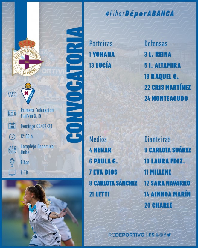 Partido marcado en rojo en el calendario de la temporada en Primera Federación FutFem. El Deportivo ABANCA visita en las instalaciones de Unbe al SD Eibar, uno de los grandes aspirantes al ascenso directo, mañana domingo 5 de febrero a las 12:00, en choque correspondiente a la 19ª jornada.